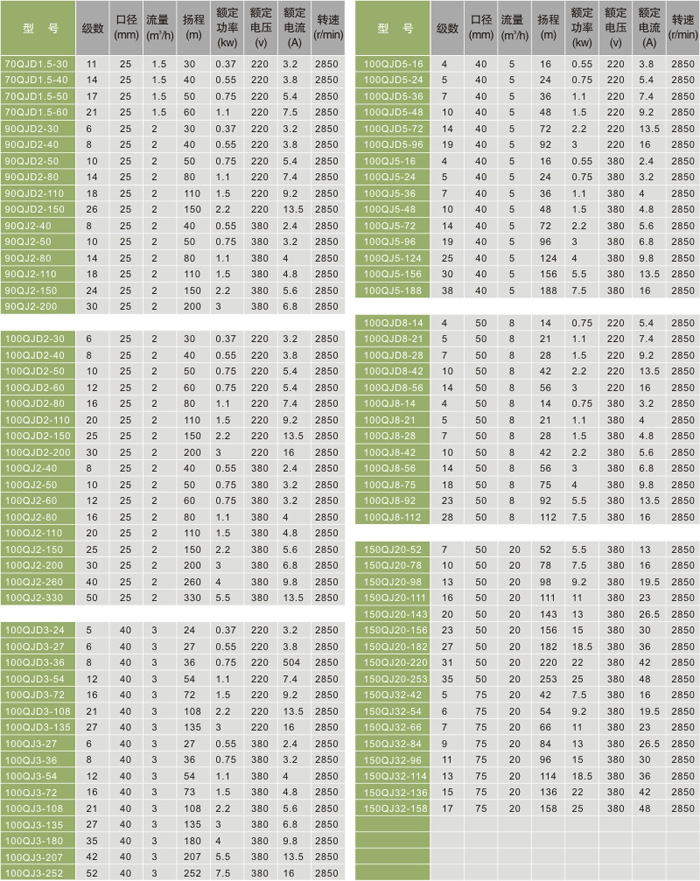 產品用途為水井或水庫抽水,適用于家庭,市民和工業(yè)。還適用于花園和農田灌溉。水質要求:1、一般無腐蝕性清水;2、水中固體物質含量不能超過0.01%(重量比);3、酸堿度PH值在6.5-8.5范圍內;4、水溫不高于200℃。電源:變壓器距離井較遠時,應考慮輸入電線壓降,要求變壓器到井口距離不超過20m,大于20m時,要求輸電線規(guī)格比原配電纜規(guī)格大兩個的等級,并考慮線壓降。型號意義