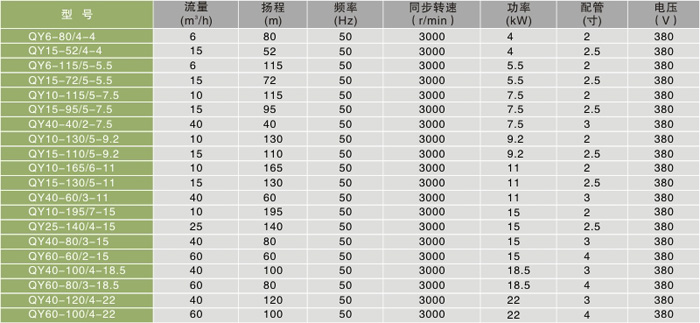 使用條件 1、介質(zhì)溫度不超過+400c; 2、水中不溶性固體含量容積比不超過0.2%,粒度不超過0.2mm; 3、水的PH值在6~9之間; 4、潛水深度不超過5m。